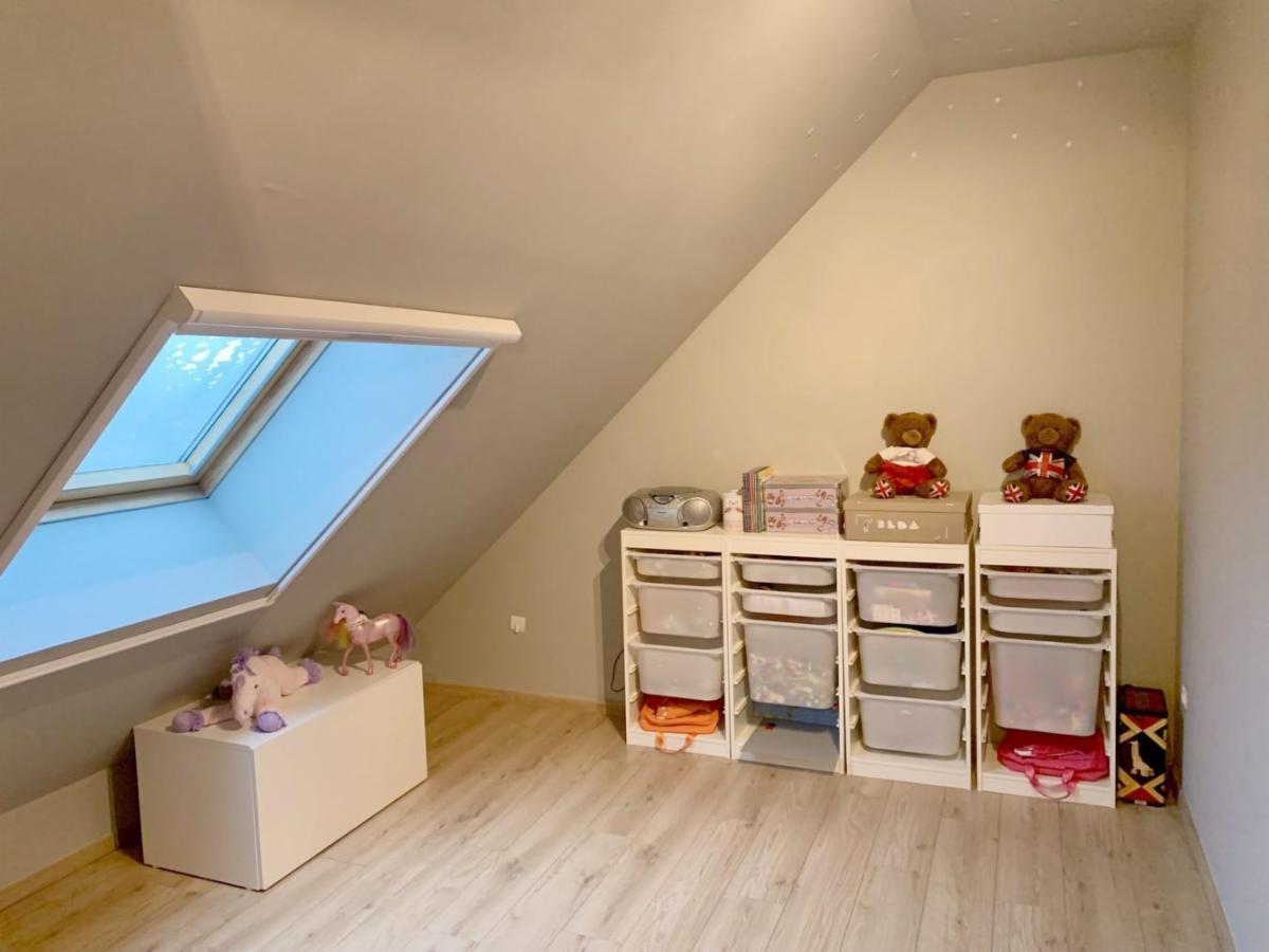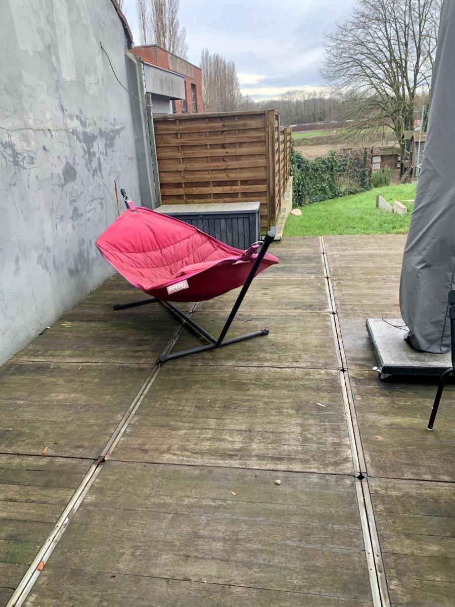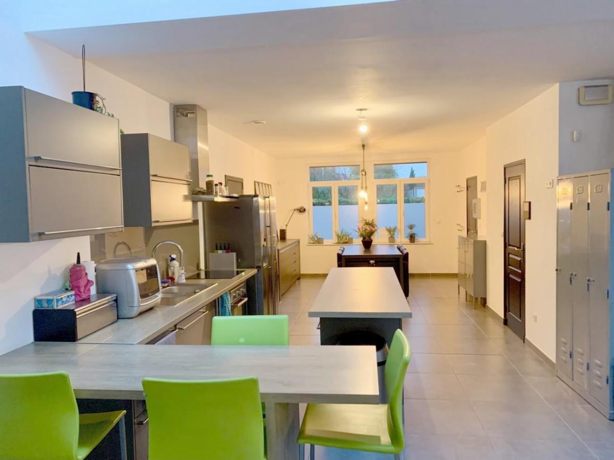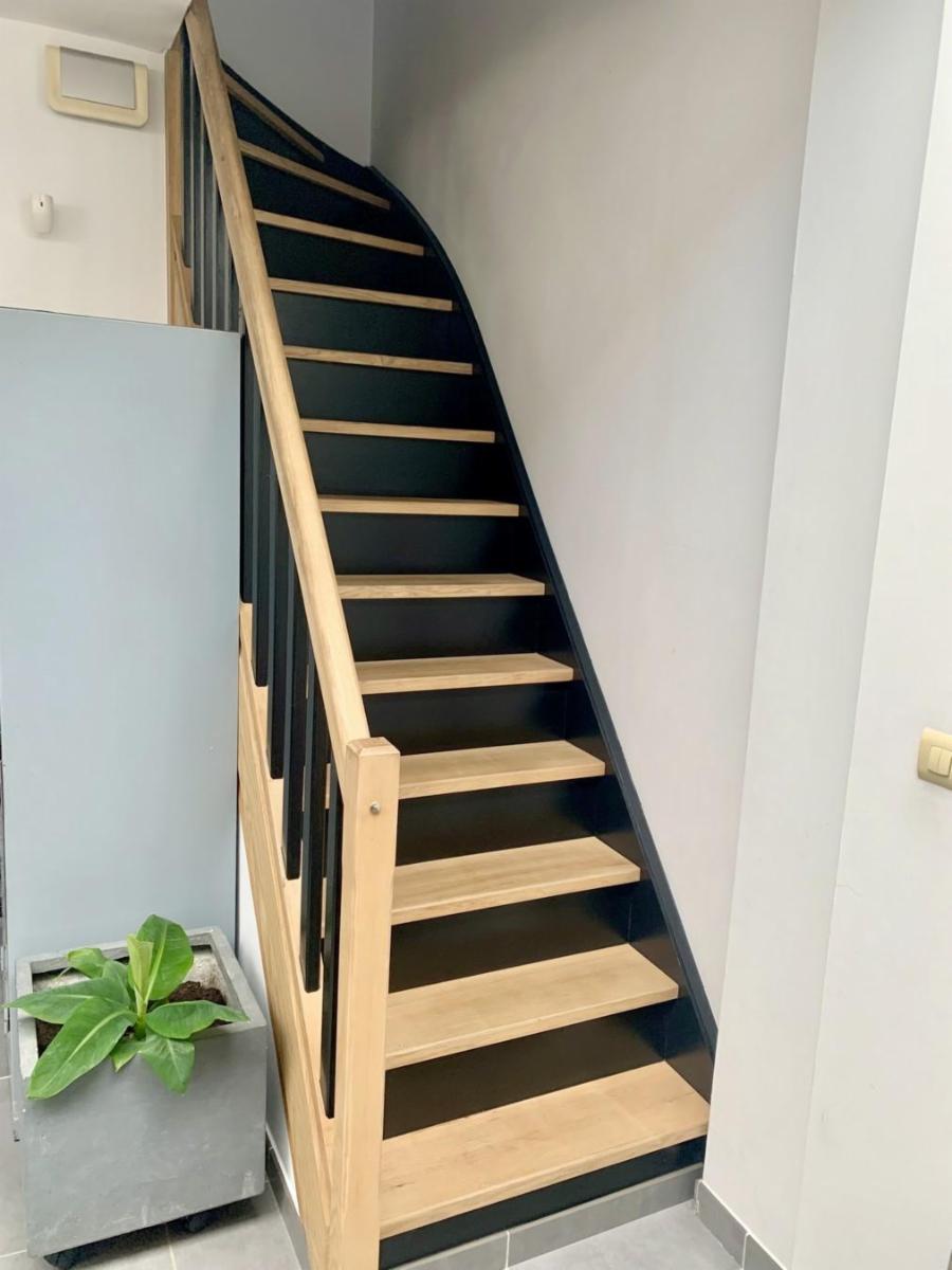 Maison entièrement rénovée avec jardin de +/- 450 m² et parking privé pour 2 voitures, comprenant :