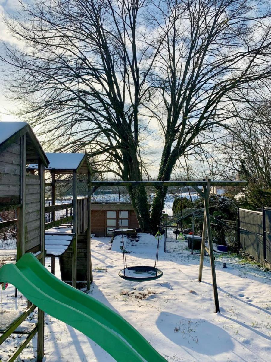 - au rez-de-chaussée : hall d'entrée, wc séparé avec lave-mains, cellier, vaste pièce ouverte aménagée en salle à manger, cuisine équipée avec ilot central amovible et agréable salon côté jardin, terrasse, jardin d'env. 450 m² exposé sud-ouest (avec grand abri et module de jeux) ;